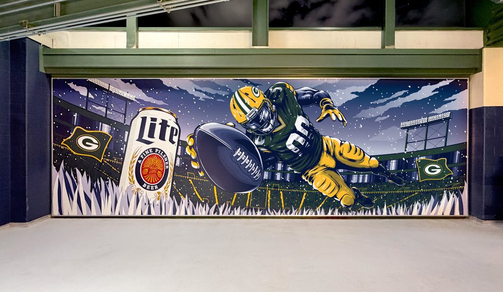 Two Wisconsin legends that are best in the cold: Miller Lite and the Green Bay Packers. This mural distills the Lambeau Field experience to 3 things – winning, fans, and Miller Lite.